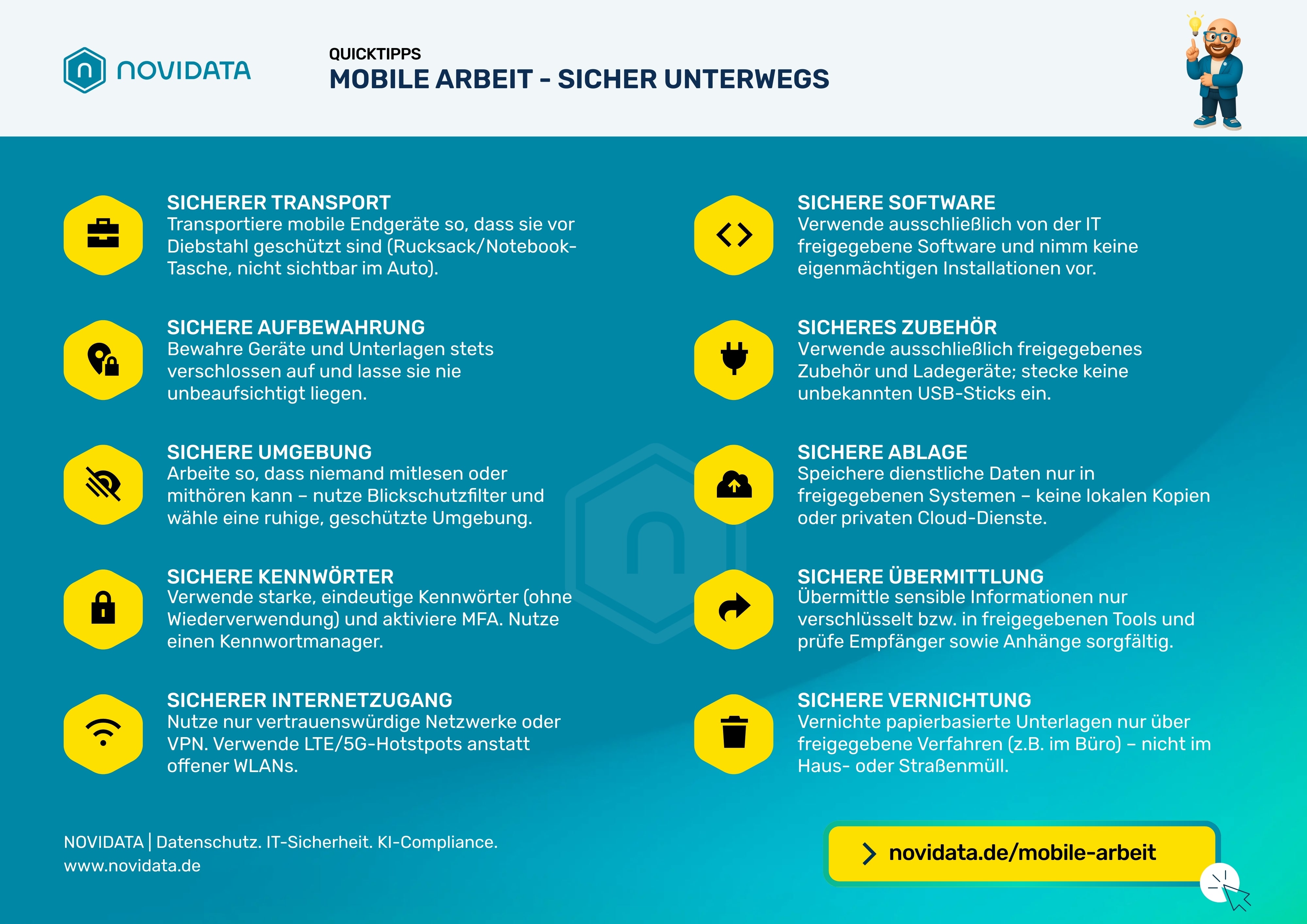 So schützt du dich und dein Unternehmen vor den typischen Risiken mobiler Arbeit – mit praxisnahen Tipps für Homeoffice, unterwegs und beim Arbeiten im Ausland.